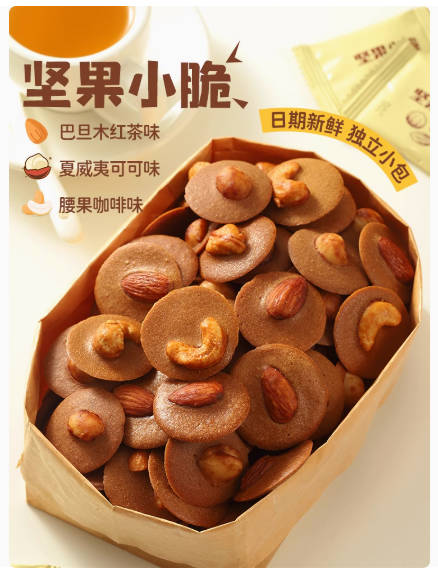浓香酥脆!坚果小脆饼巴旦木薄脆饼干可可脆片零食办公室休闲小吃