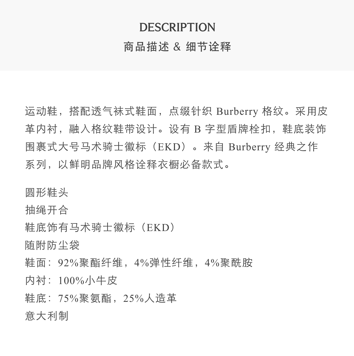 【官方正品】BURBERRY 男鞋 格纹针织 Neptune 运动鞋 80993201