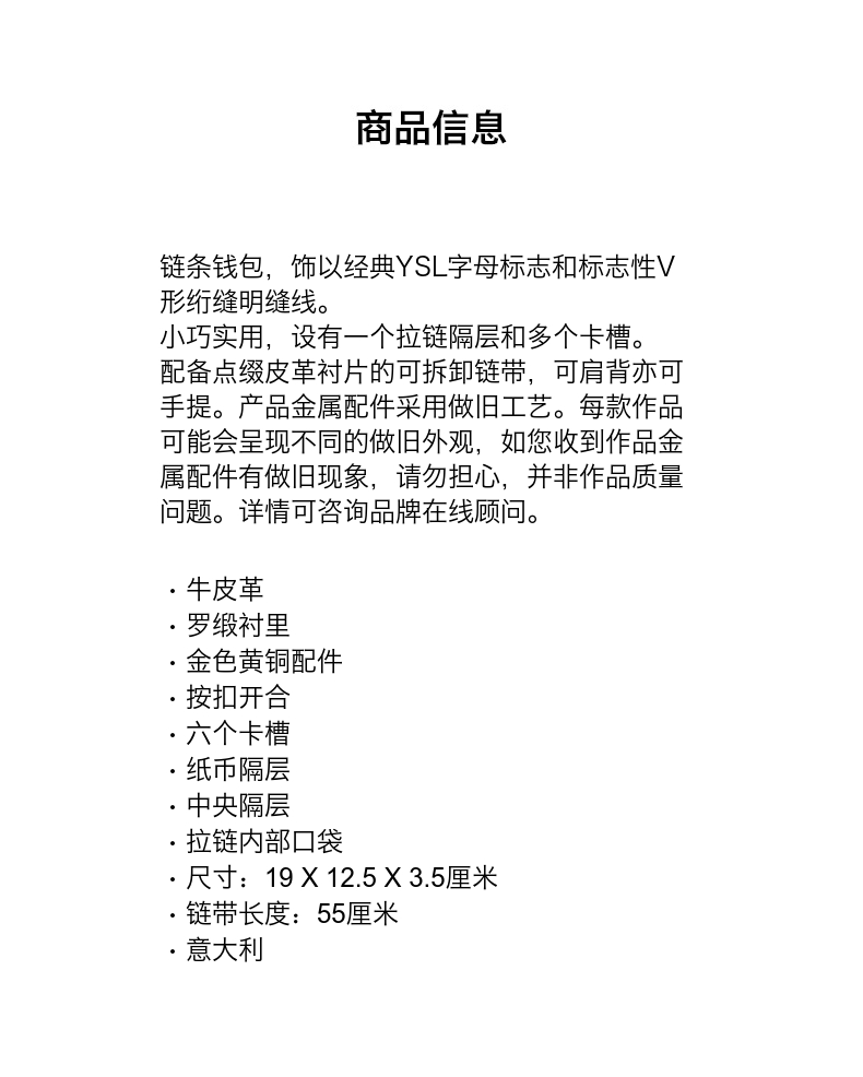 YSL/圣罗兰 女士黑色CASSANDRE ENVELOPE链条包