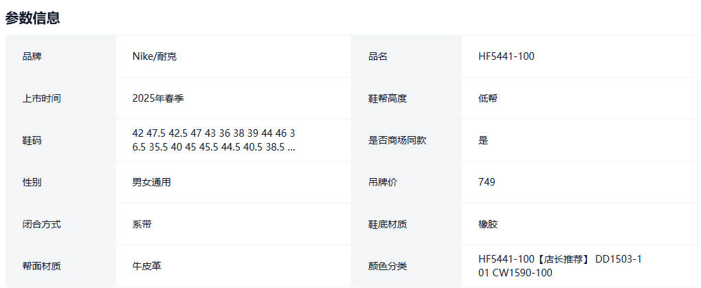 NIKE耐克 男女款黑白熊猫DUNK LOW运动休闲鞋HF5441-100