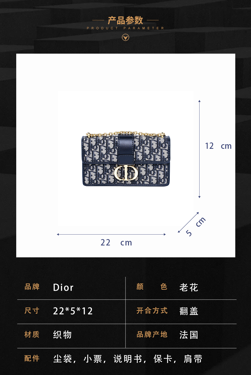 Diro迪奥女包老花Montaigne蒙田30链条单肩包小号