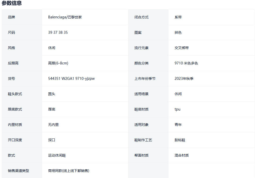 全新未使用巴黎世家女士系带休闲运动鞋老爹鞋厚底鞋