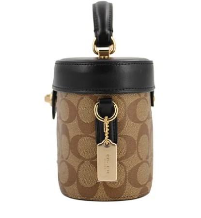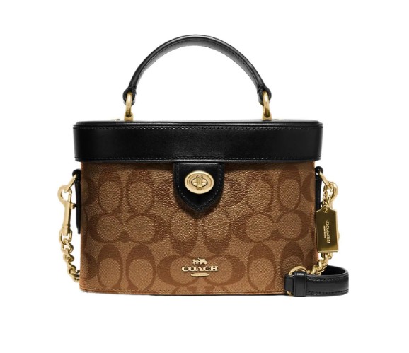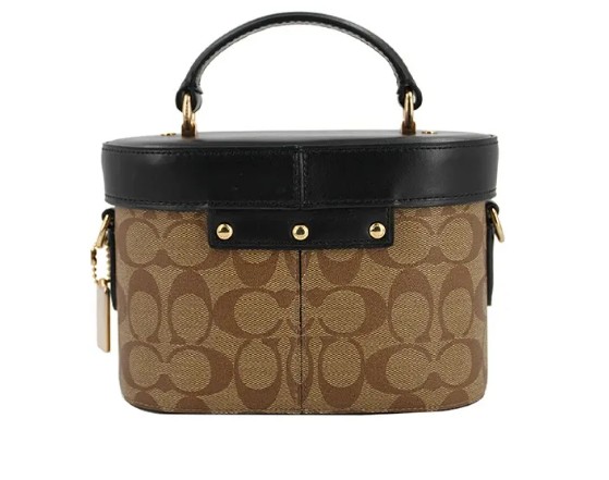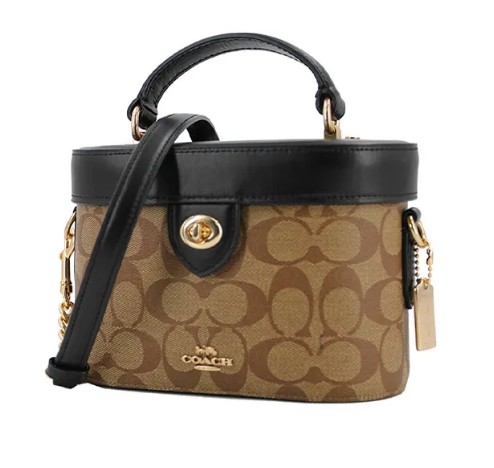 COACH蔻驰 Kay 20 经典老花满印徽标Logo 皮革 盒子包单肩斜挎手提包 小号 女款 黑色配棕色老花