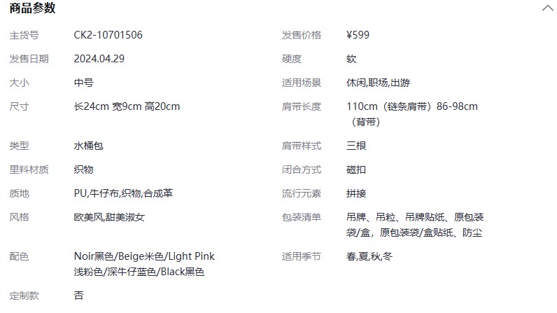 CHARLES&KEITH 小ck 绗缝菱格链条水桶包 PU 双肩包单肩包 中号 女款 Noir黑色/Beige米色/Light Pink浅粉色/深牛仔蓝色/Black黑色
