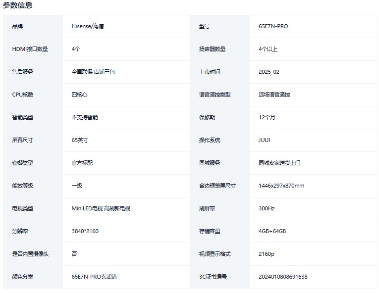 海信电视E7N Pro 65英寸 U+MiniLED 墨晶屏 以旧换新补贴电视机