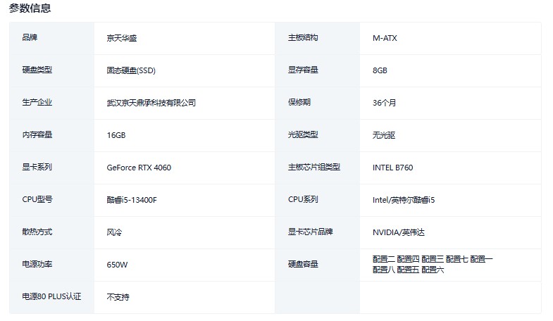 【12期免息】京天华盛i5 13400F/RTX4060Ti/3050/14600KF游戏电脑主机国补设计办公台式机整机全套DIY组装机