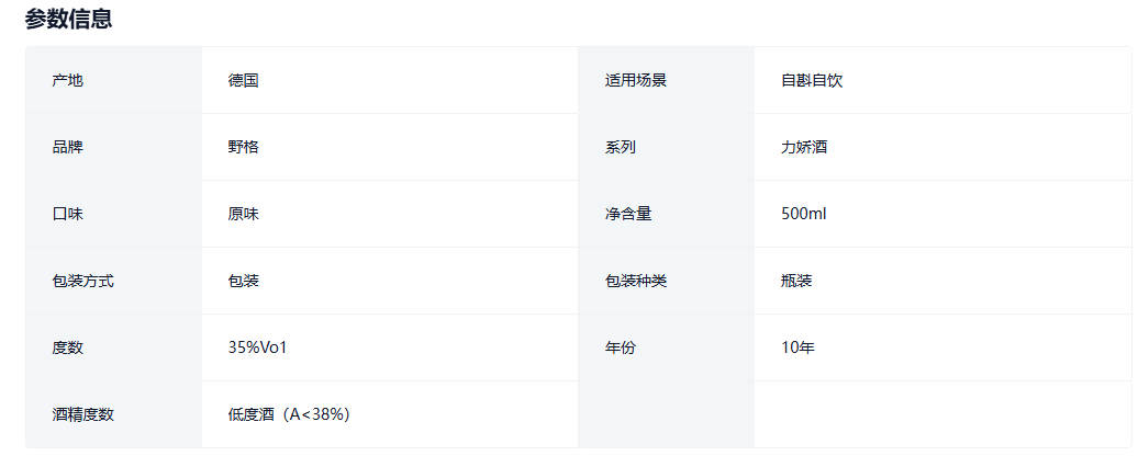 网红野格利口酒力娇酒基酒德国进口500ml1瓶
