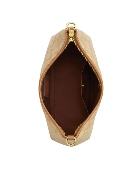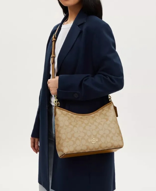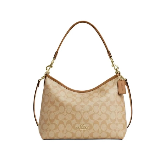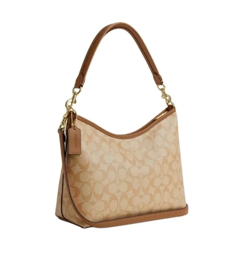 COACH蔻驰 Laurel 31 通勤大容量可拆卸肩带 涂层布料拼皮革 流浪包腋下包单肩斜挎手提包 大号 女款 浅卡其色