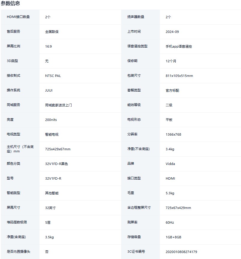 Vidda R32二级能效版 32英寸海信电视 液晶电视机以旧换新补贴43