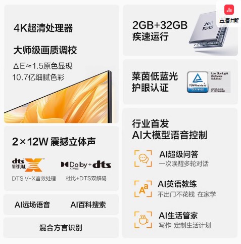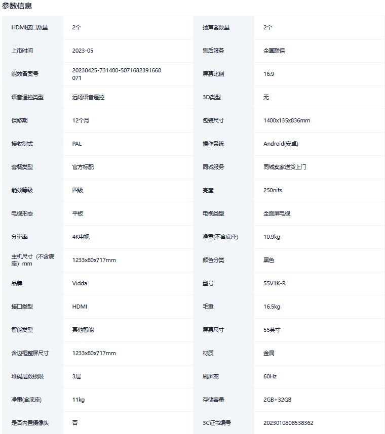 Vidda R55海信电视55英寸4K全面屏液晶平板智能家用电视机65
