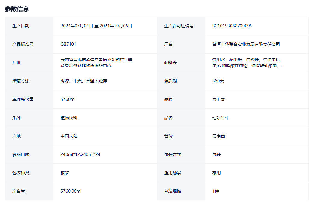 喜上春七彩牛牛植物高蛋白饮料牛油果七彩花生12*240ml年货礼盒装