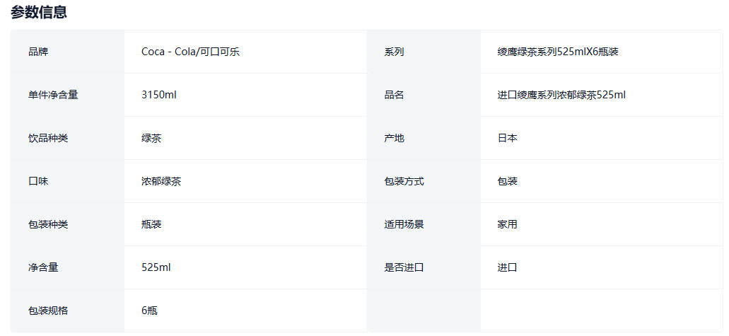 进口可口可乐绫鹰系列浓郁绿茶饮料525mlX6瓶装
