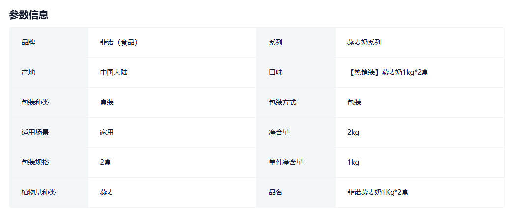 菲诺燕麦奶咖啡伴侣植物蛋白1Kg*2盒燕麦拿铁饮料