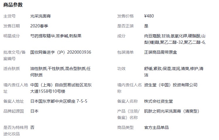 CPB肌肤之钥 光采洁面膏 舒缓紧致保湿滋润清爽修护清洁 125ml