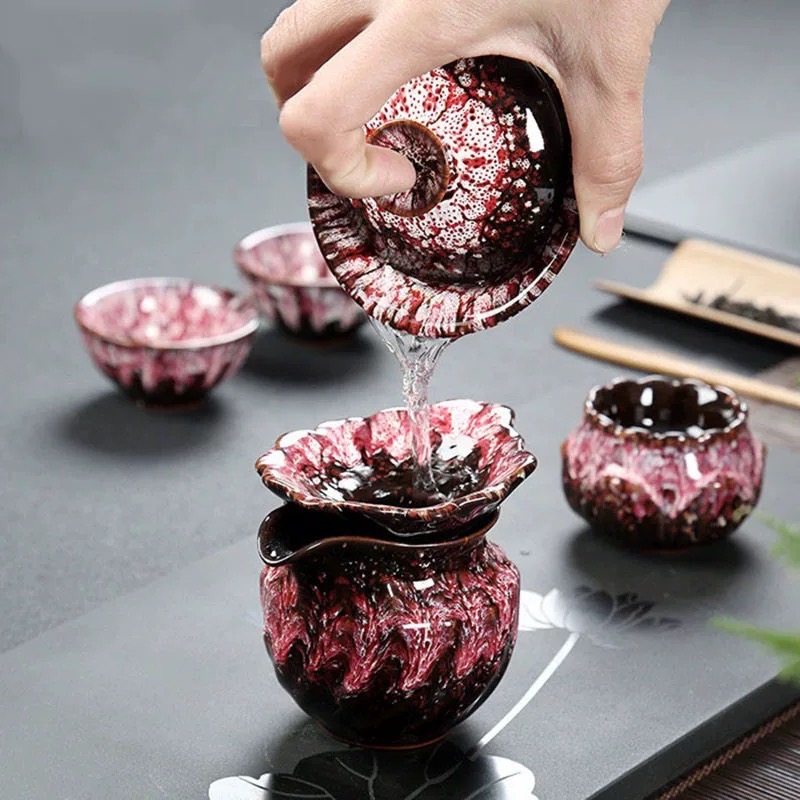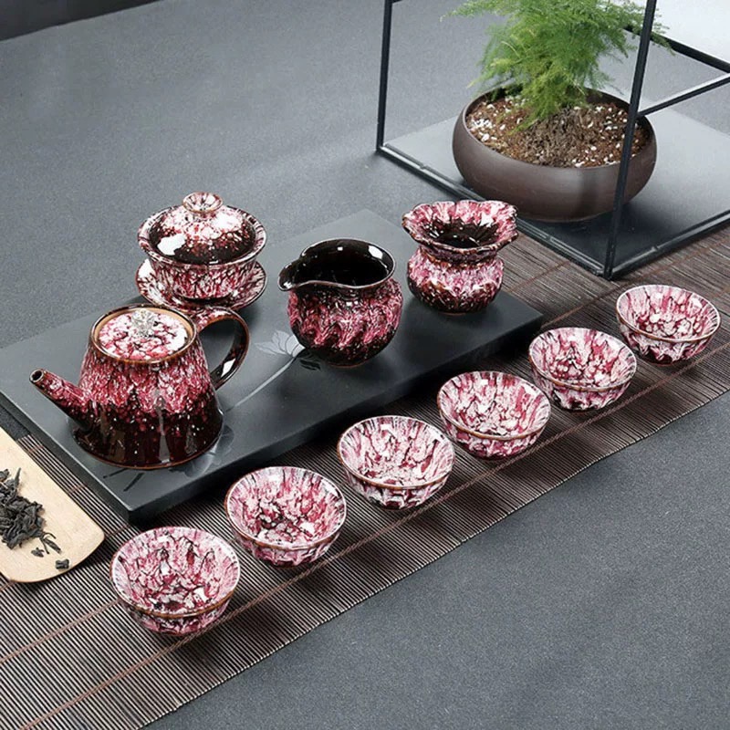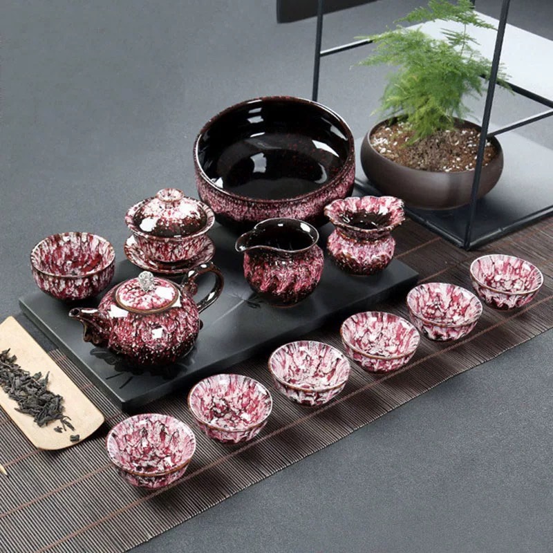 轻奢窑变功夫茶具整套高档陶瓷茶杯茶壶茶洗盖碗组合中式茶器套装