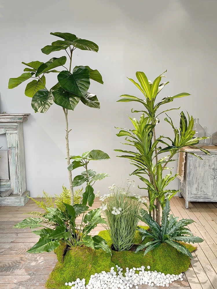 楼夏家仿真绿植造景热带大型落地室内散尾葵吊钟装饰假植物景观