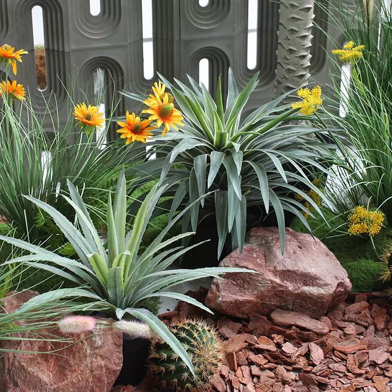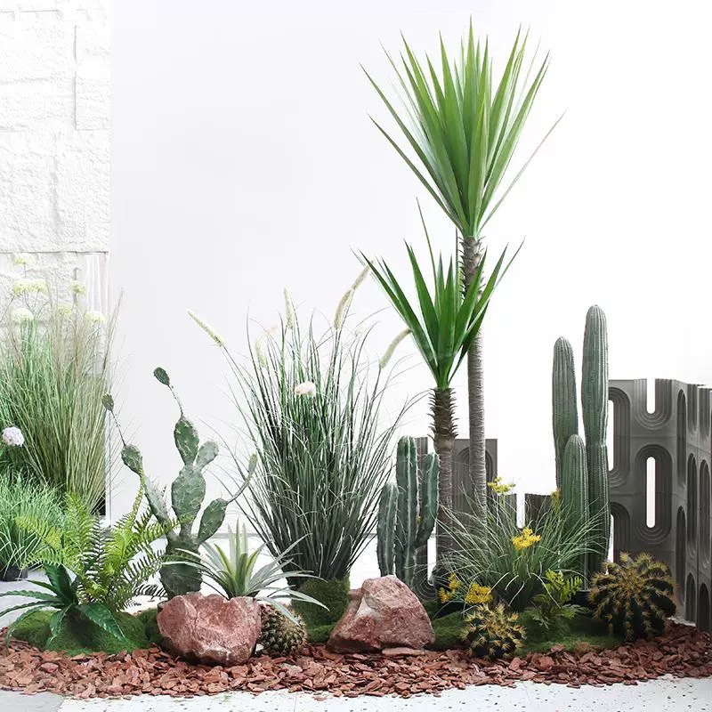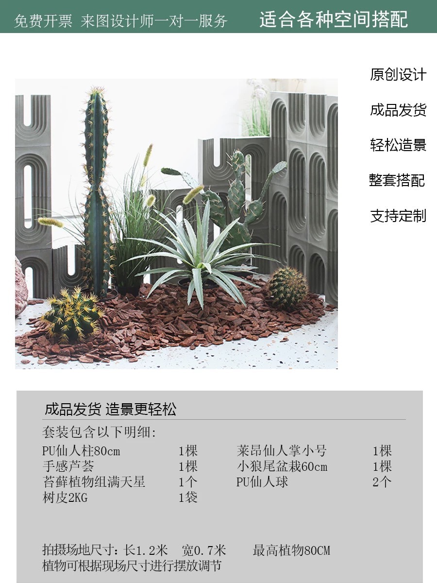 沙生植物造景仙人柱龙舌兰仿真绿植组合景观楼梯角咖啡厅走廊花池