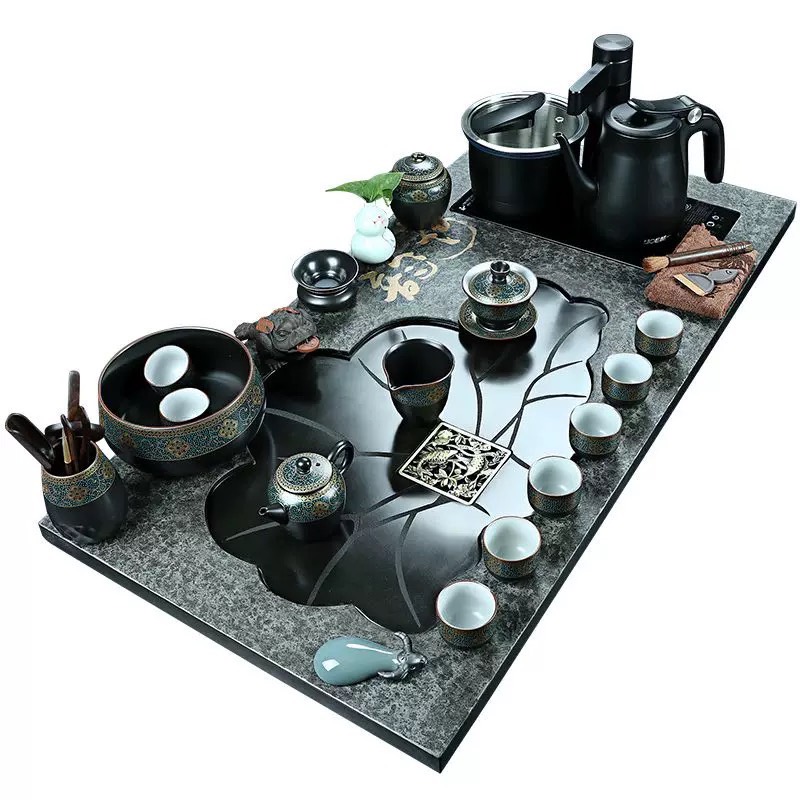 斐克利亚精品乌金石茶台全自动一体茶盘喝茶整套功夫茶具套装家用