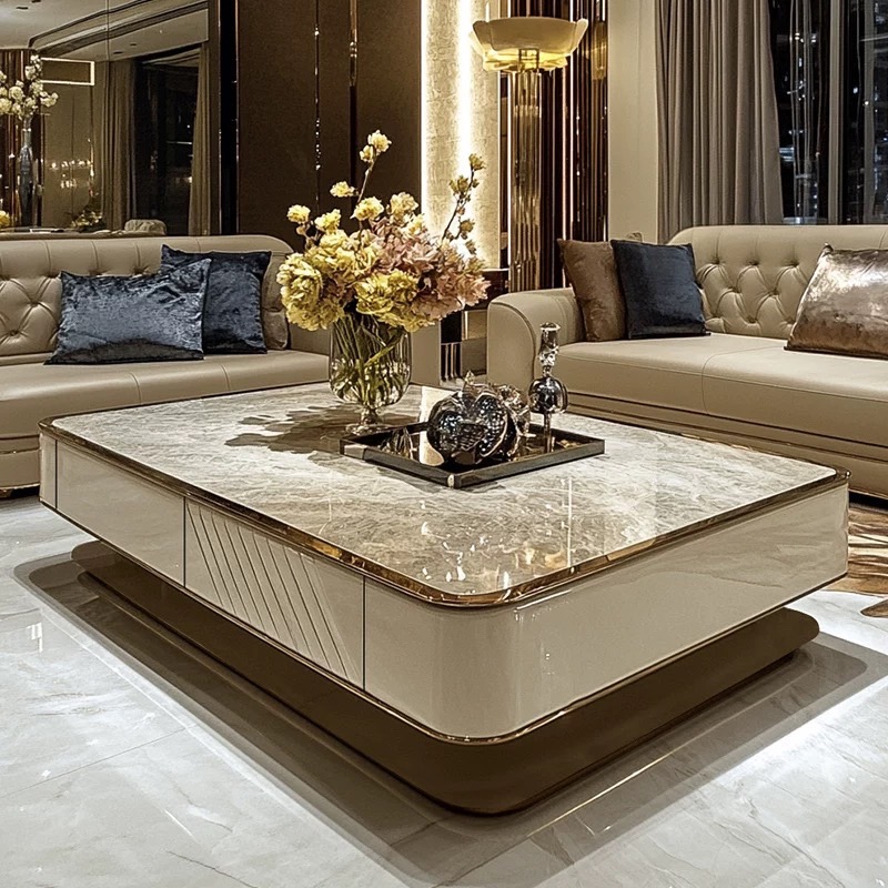 茶几客厅轻奢高级感微晶石桌家用大小户型茶台大容量储物2025新款