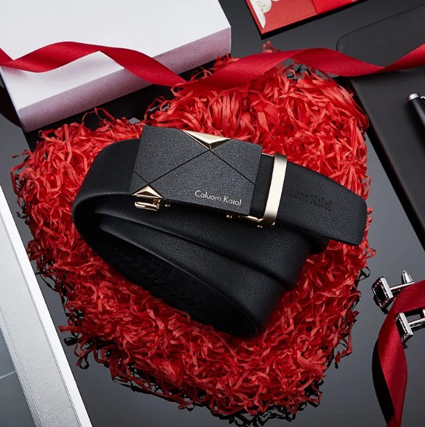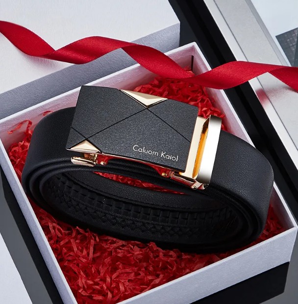 【可刻字】 Caluom Kaiol 奢侈大品牌正品 时尚潮流百搭 自动扣真皮皮带 男朋友 头层牛皮 商务职场简约休闲腰带 高档礼盒装 男款 多色 宽3.5cm