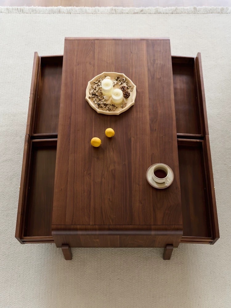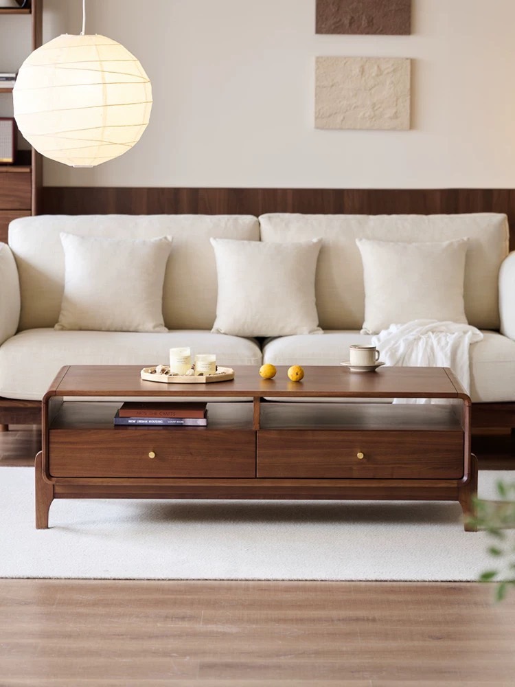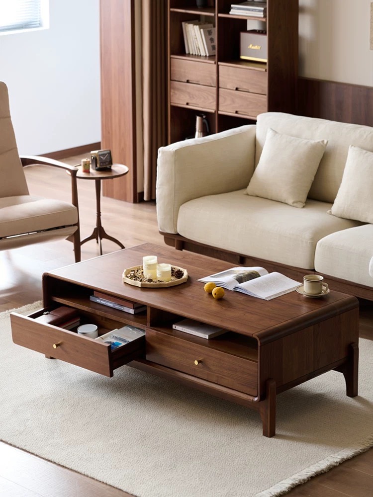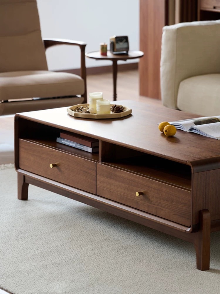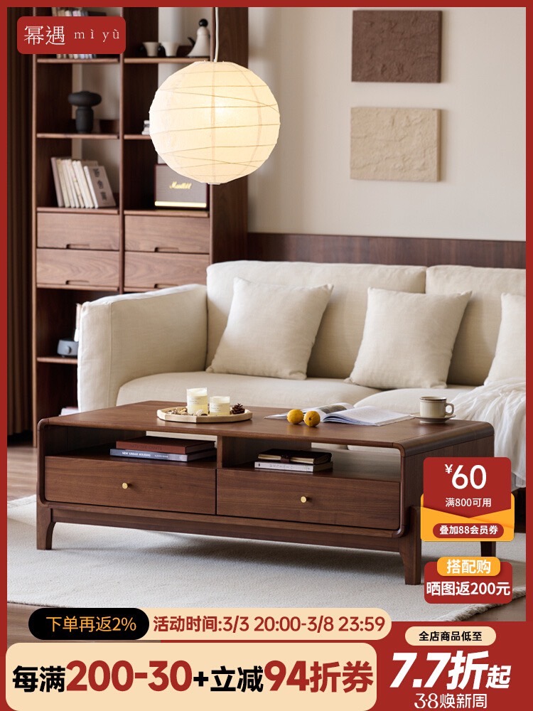 北美黑胡桃木客厅茶几矮桌新中式小户型储物带抽屉实木茶几小桌子