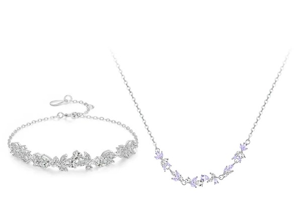 七度 紫藤花 s999纯银 微笑满锆森系小清新闪耀轻奢锁骨链通勤百搭 足银 项链 男女同款情侣款
