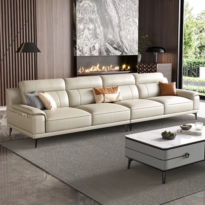 简约现代轻奢真皮沙发客简约客厅家用大小户型直排沙发皮沙发