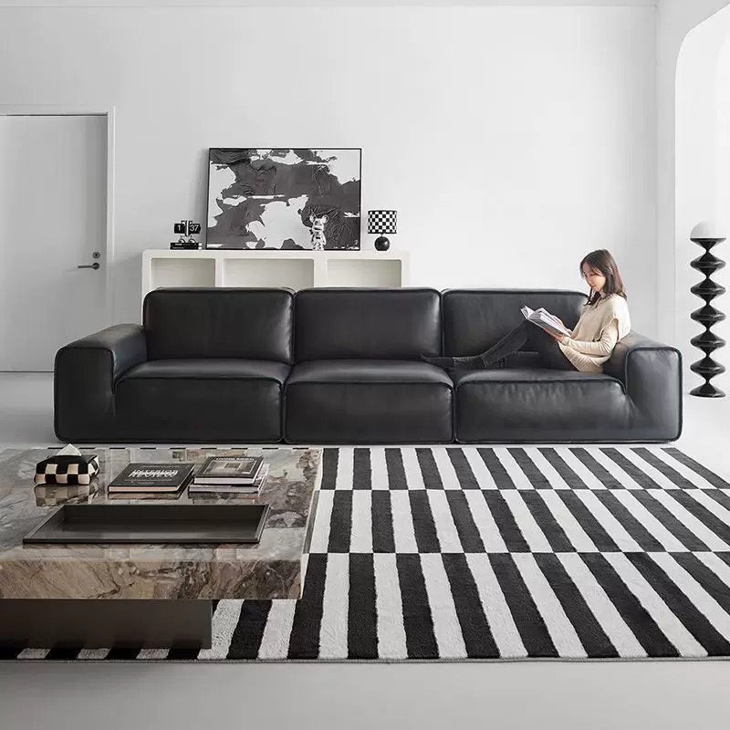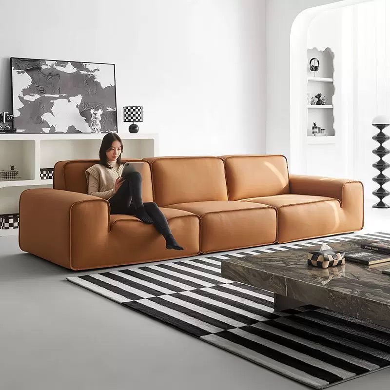 意式大黑牛真皮沙发客厅现代简约小户型直排轻奢网红款豆腐块沙
