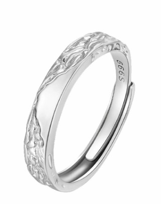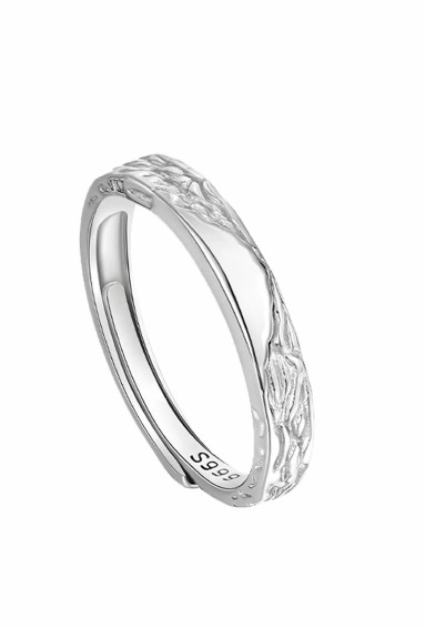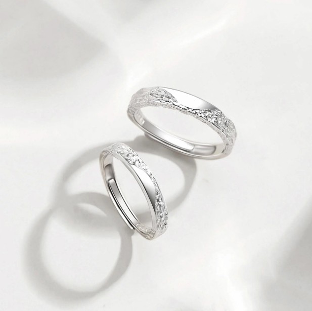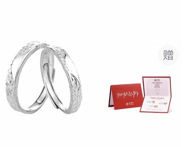 【可定制刻字】 老凤祥 天作之合对戒999开口可调节冰川纹理素圈简约小众设计 女朋友周年生精美礼盒 足银999 戒指一对 男女同款情侣款