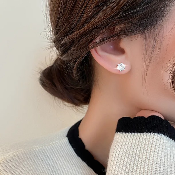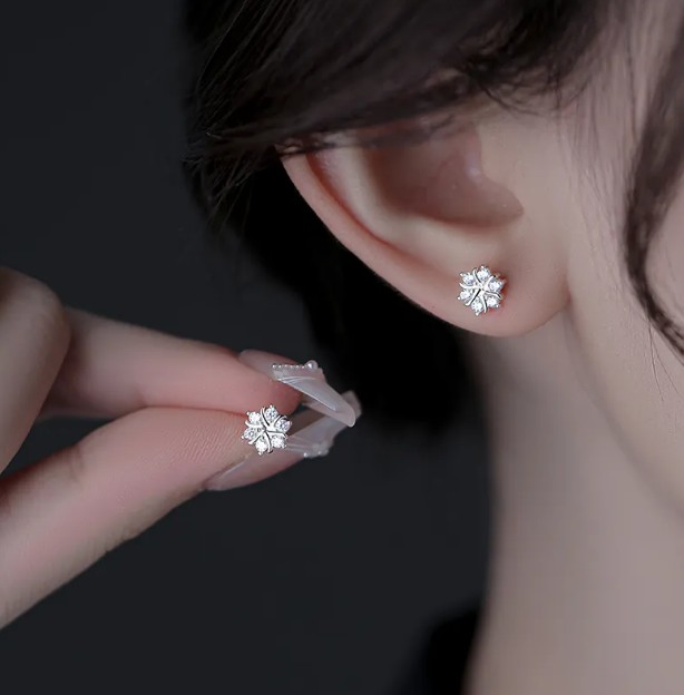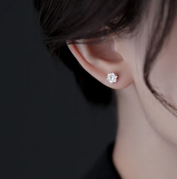 韵系 锆石雪花轻奢小众小巧精致养耳洞 999足银 耳钉 女款