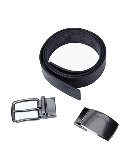 COACH蔻驰 双头平滑扣 - 腰带 男款 黑灰色 宽3.8cm