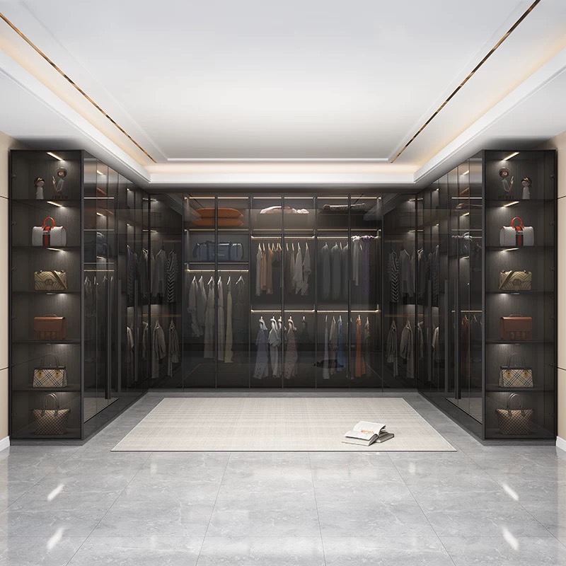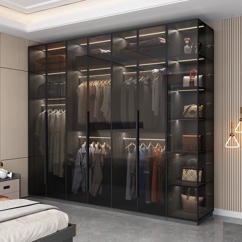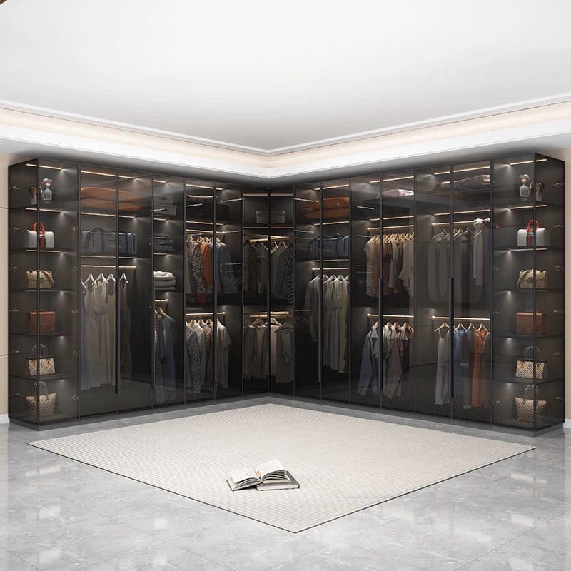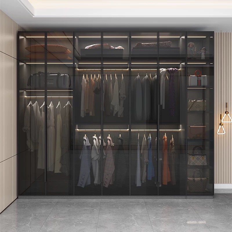 衣柜家用卧室实木一门到顶60cm深L型衣帽间定制组合玻璃衣橱柜子