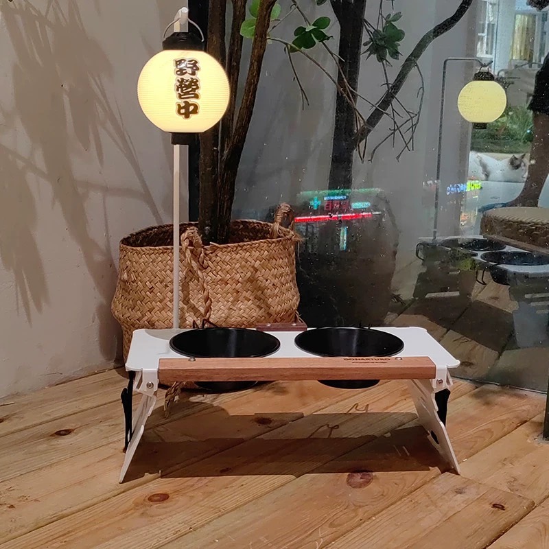 露营狗碗猫粮碗架户外露营狗盆双碗浅口专用水碗架小型犬防打翻