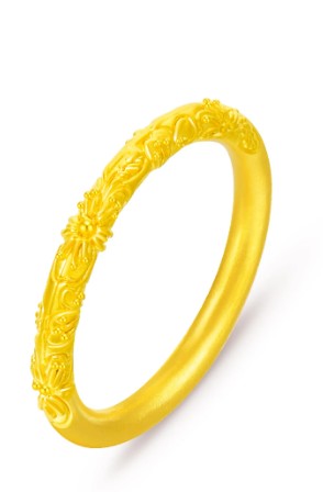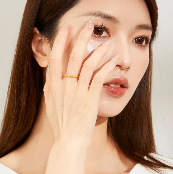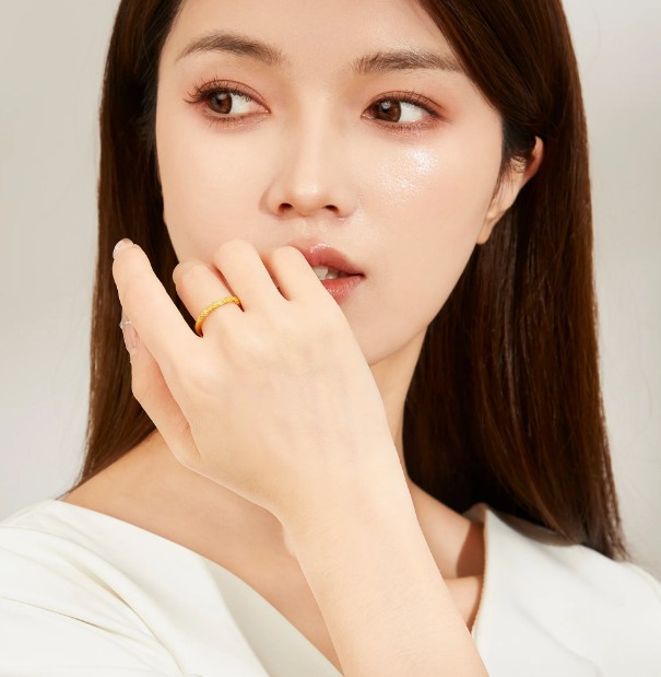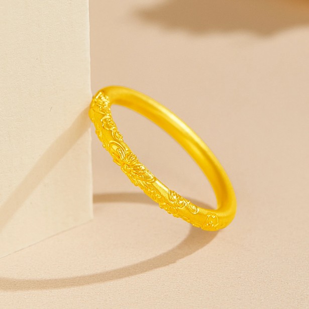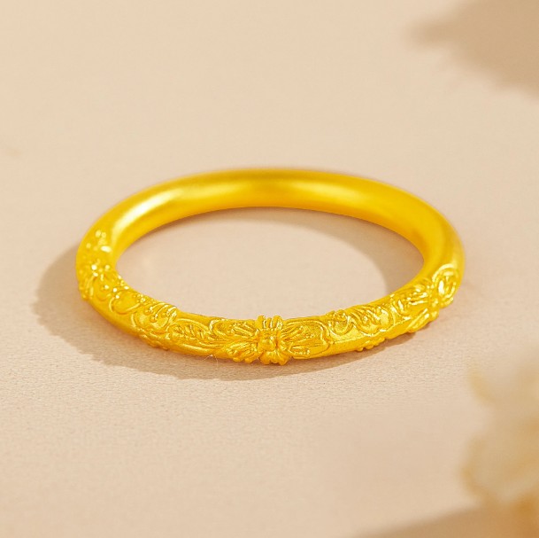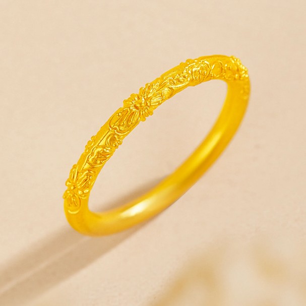 老凤祥 紫荆花樱花古法素圈 新中式小众设计 精致纯金戒指单戒高级感 足金 一口价 黄金戒指女生 女款 生日女朋友闺蜜礼盒礼物