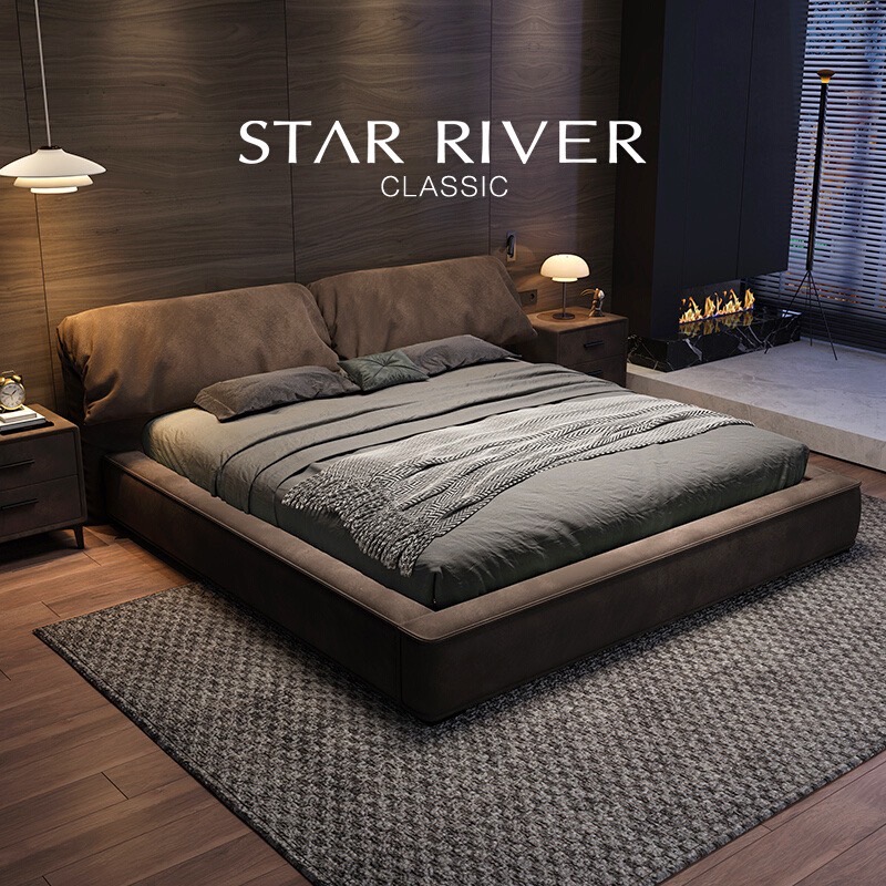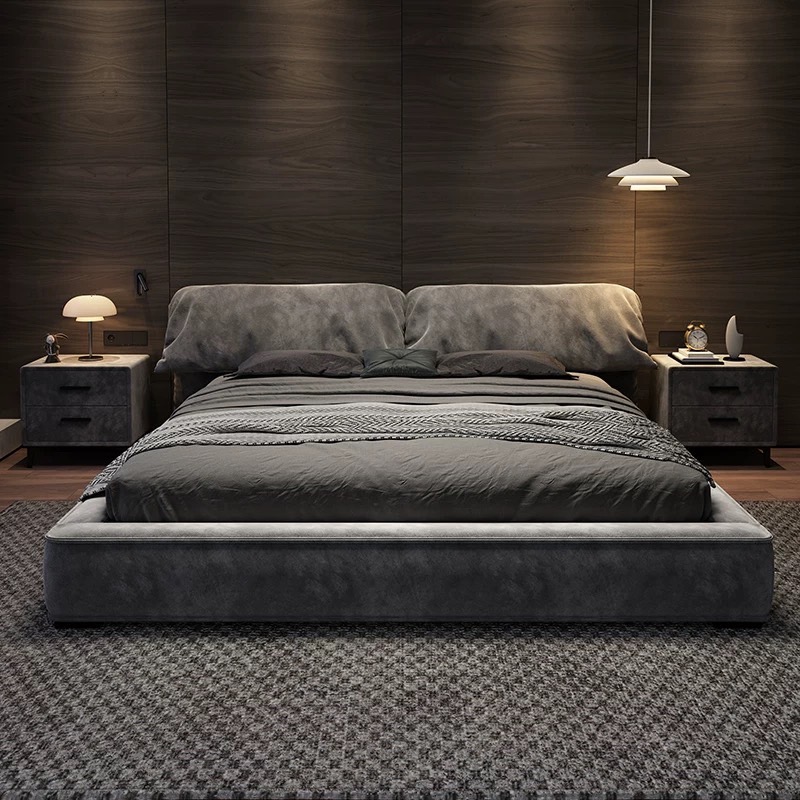 布艺床现代简约麂皮绒主卧室大床双人床1.8米2米大象耳朵科技布床