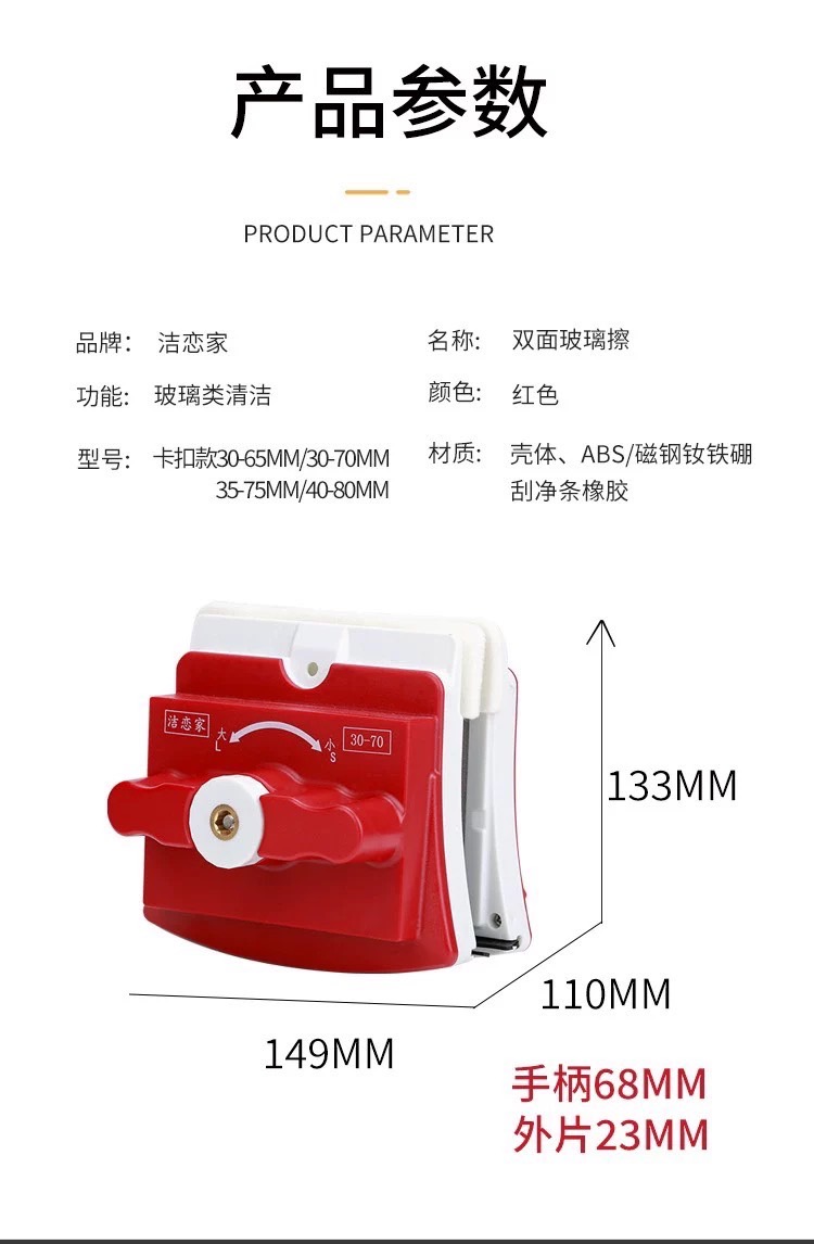 洁恋家40-80擦玻璃双面擦家用高楼双层窗户厚玻璃清洗强磁清洁搽