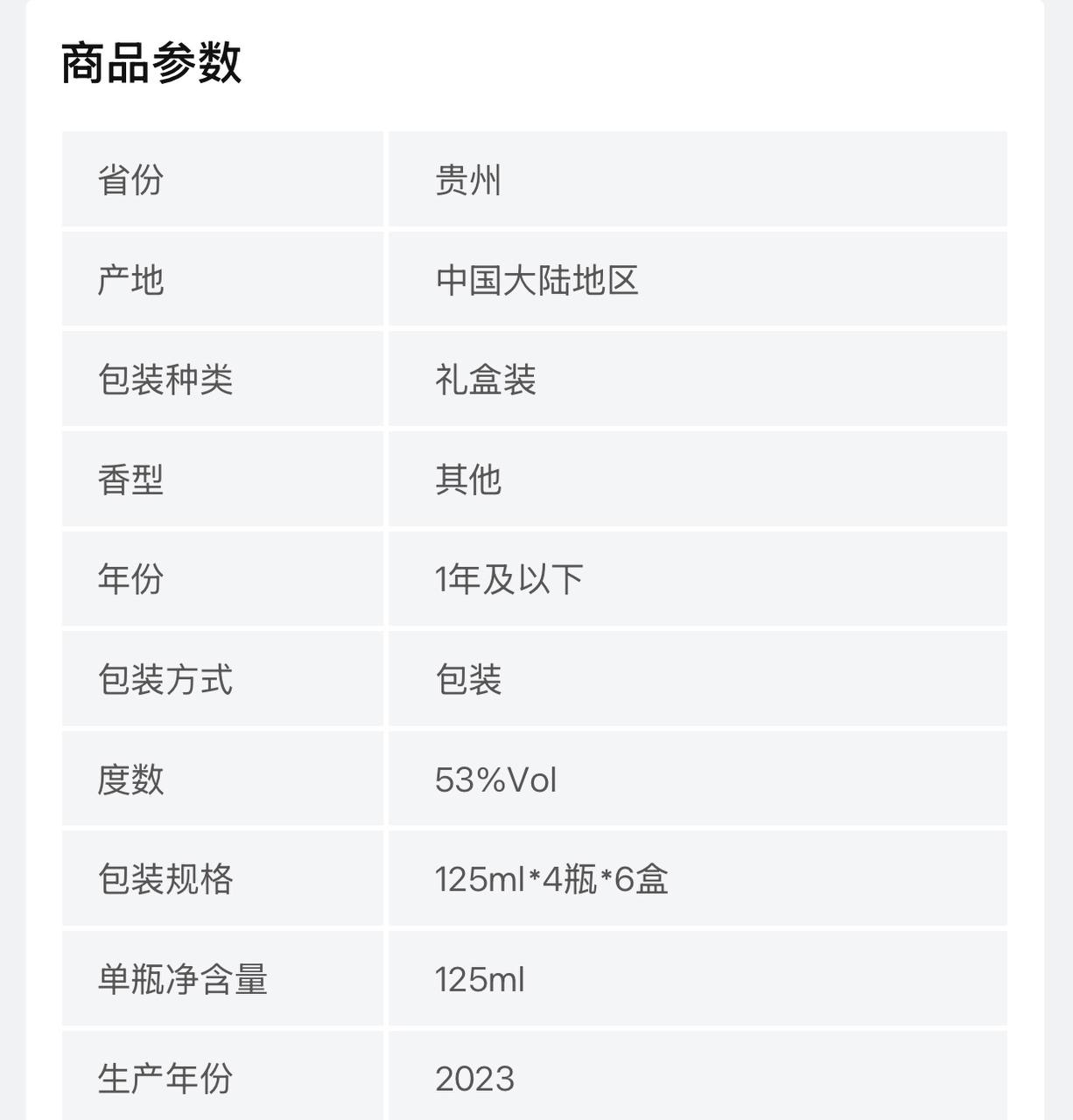 贵州茅台不老酒1984 53度礼盒125ml*4瓶*6盒整箱装