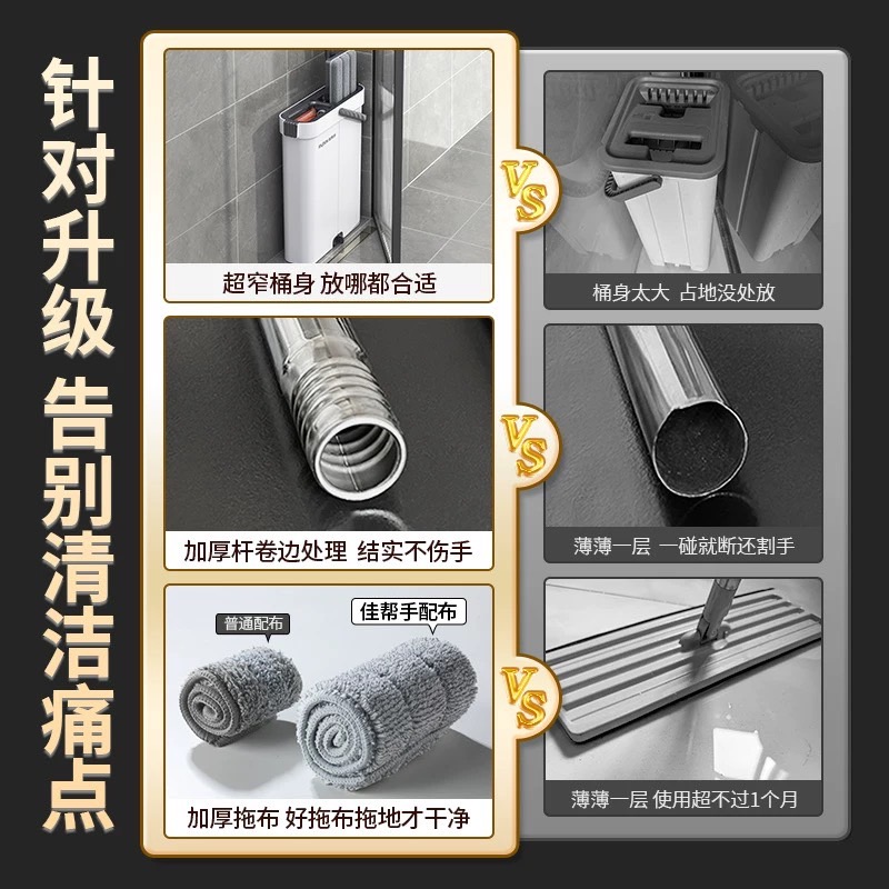 日本进口mujie拖把家用一拖净大平板免手洗懒人地拖墩布拖地神器