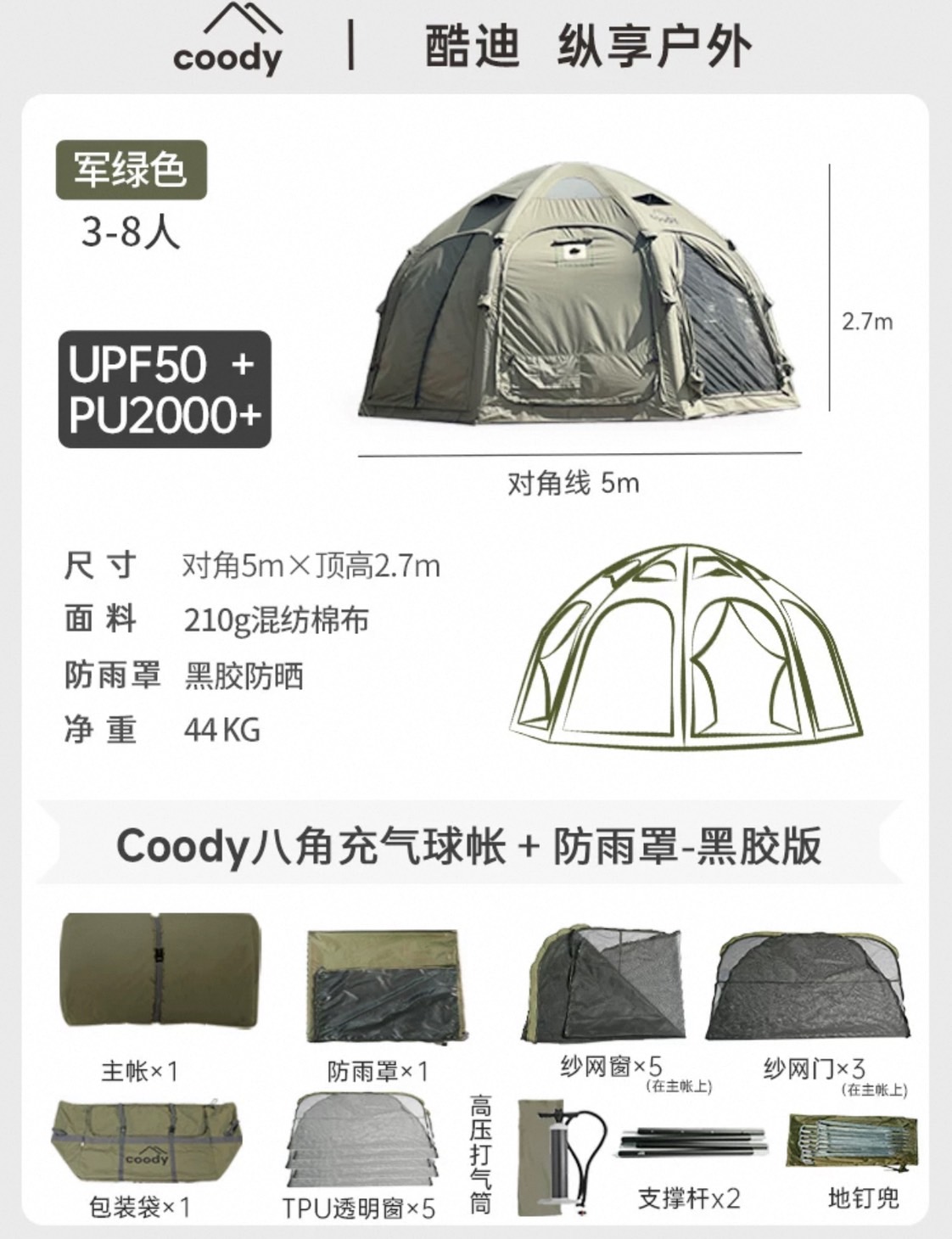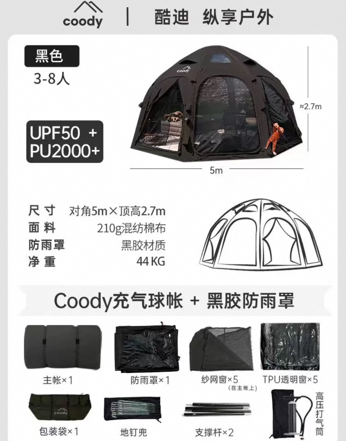 军鑫Coody充气球型帐篷春夏户外露营保暖抗风星空球过夜防雨防晒