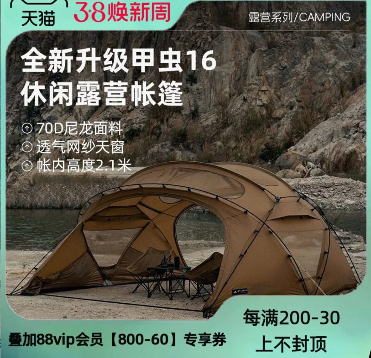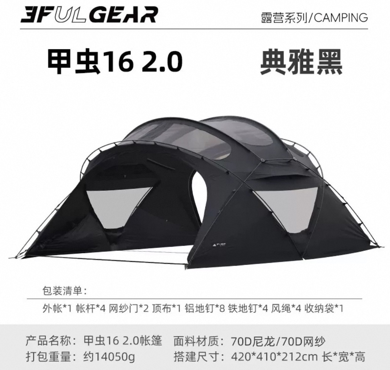 三峰出甲虫16 2.0户外露营帐篷三峰野营大空间球帐野外球形庇护所