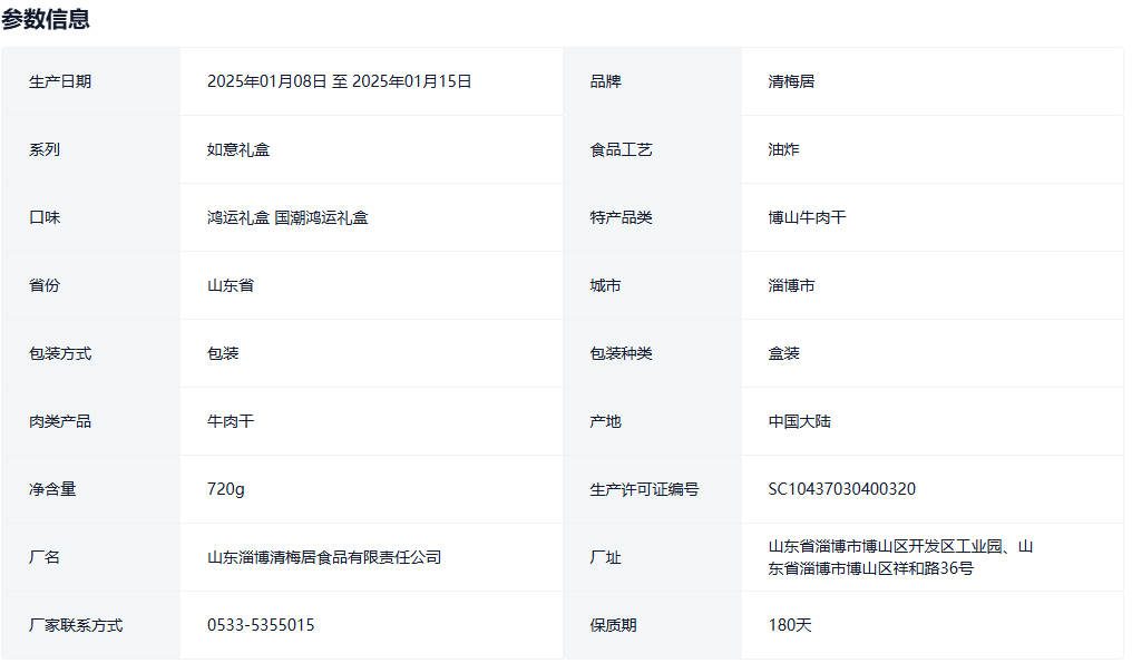 清梅居鸿运香酥牛肉干礼盒120gX6桶节日礼品山东淄博特产清真食品