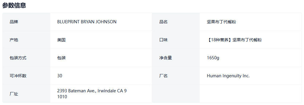 BlueprintBryanJohnson坚果布丁代餐粉低脂素食非转基因0添加0糖