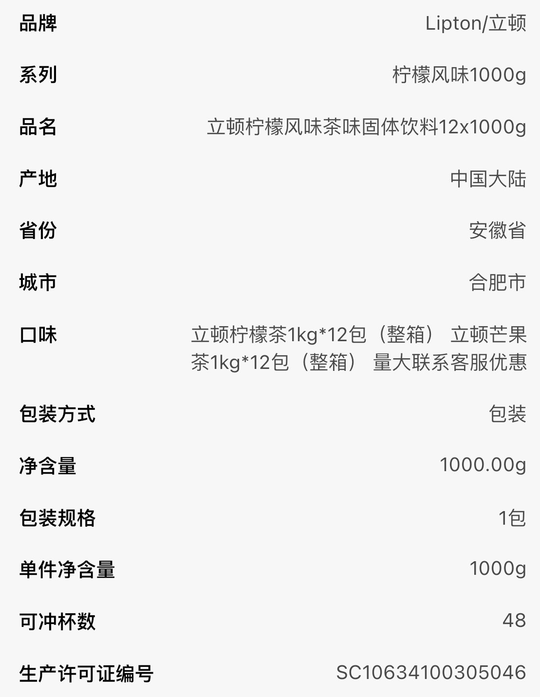 立顿柠檬风味茶红茶1kg*12袋箱速溶冲饮果汁冰红茶粉固体饮料商用