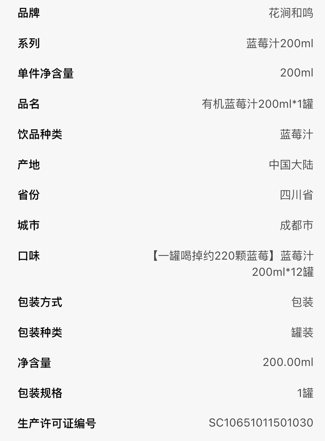 花涧和鸣NFC100%蓝莓汁花青素纯果汁纯蓝莓果汁0添加蓝莓饮料