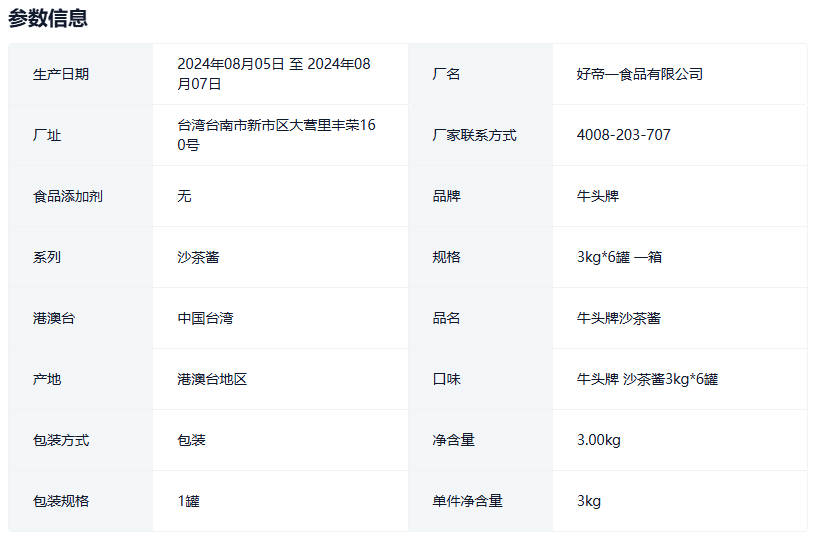 正品台湾进口酒店高级调料口味正宗牛头牌 沙茶酱3kg6罐箱
