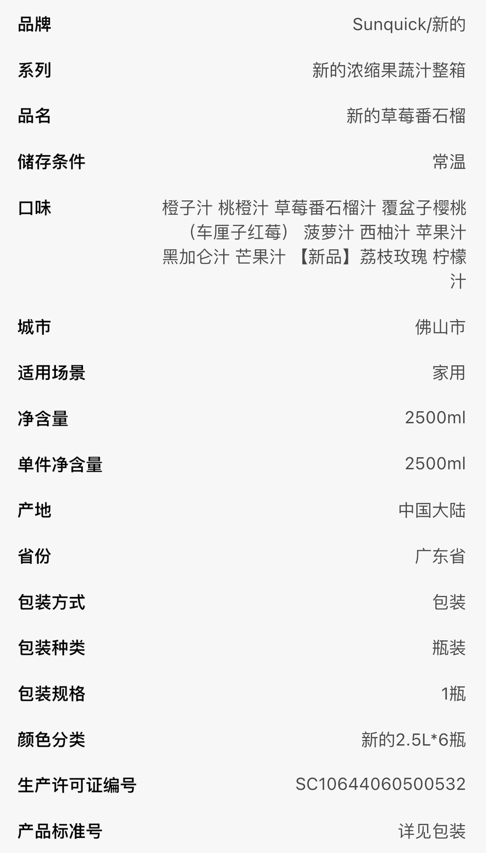 新的浓缩果汁sunquick橙汁柠檬汁黑加仑芒果汁草莓番石榴2.5L菠萝