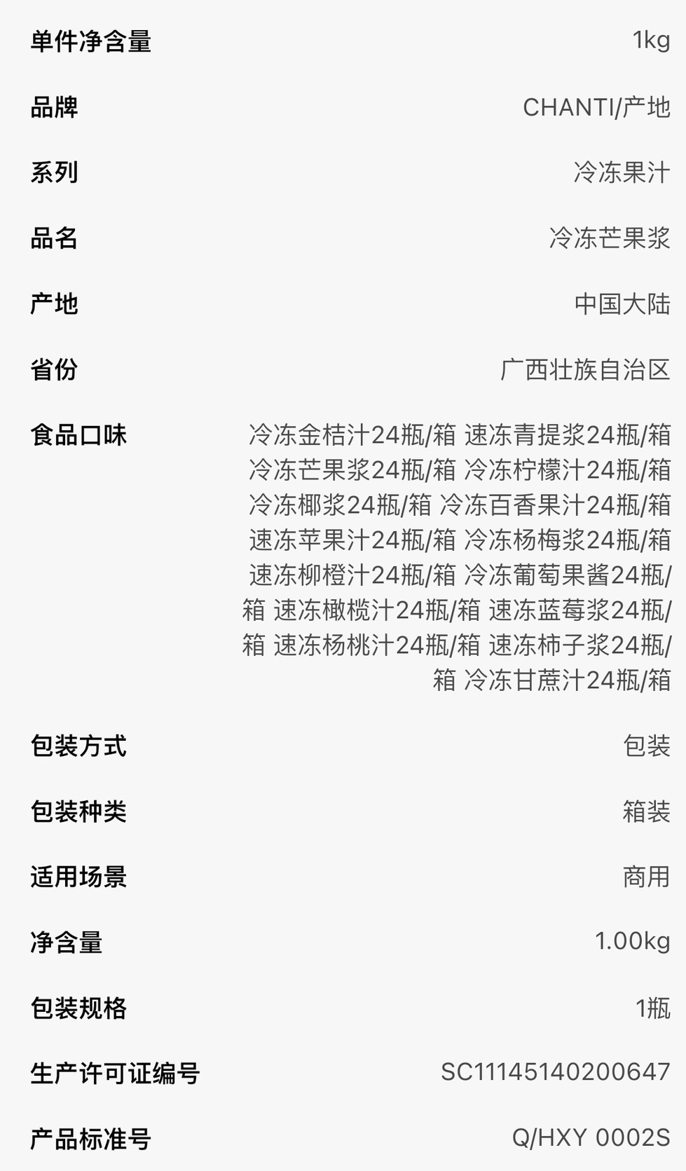 产地冷冻果汁甘蔗汁芒果百香果葡萄柠檬水蜜桃火龙果酱原料24瓶装