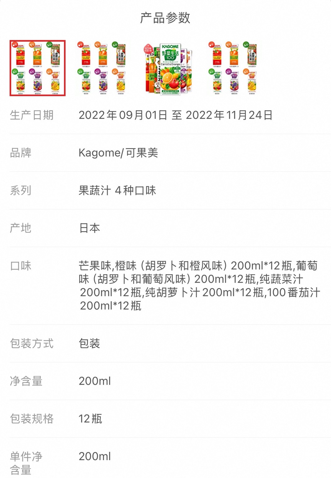 5口味任选4箱日本kagome可果美野菜生活轻断食0脂混合果蔬汁饮料