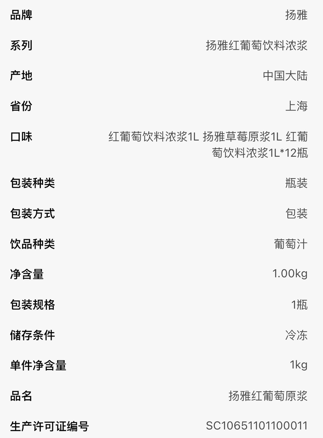 扬雅冷冻葡萄果汁原浆原榨红葡萄汁饮料多肉葡萄奶茶店专用果汁1L