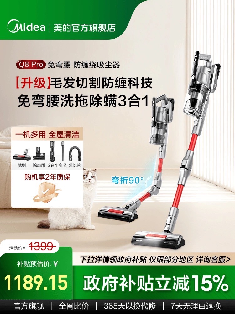 【政府补贴15%】美的无线吸尘器强力家用大吸力手持式大功率Q8PRO 3599